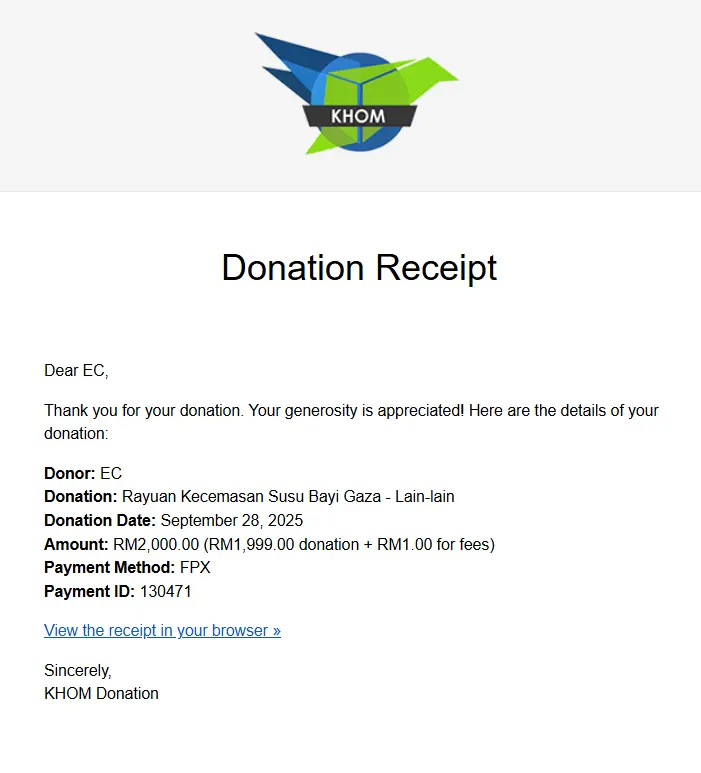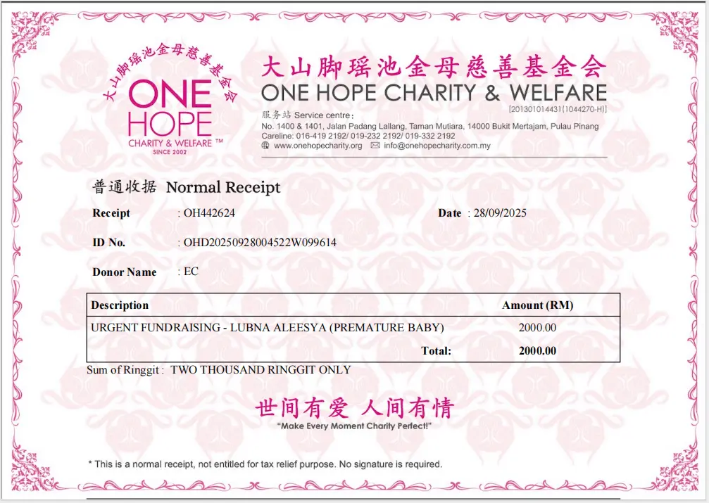 27/09/2025 Lastest Donation Malaysia RM 67,292.20 more